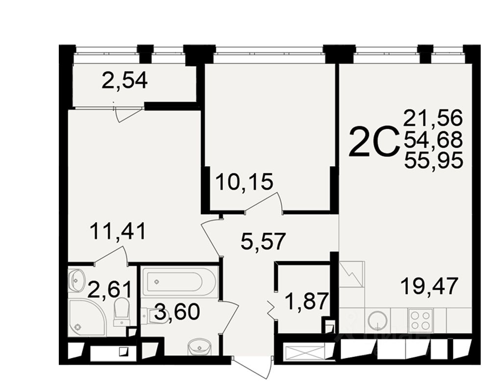 Общая площадь54,68 м²