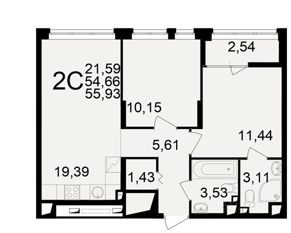 Общая площадь54,66 м²