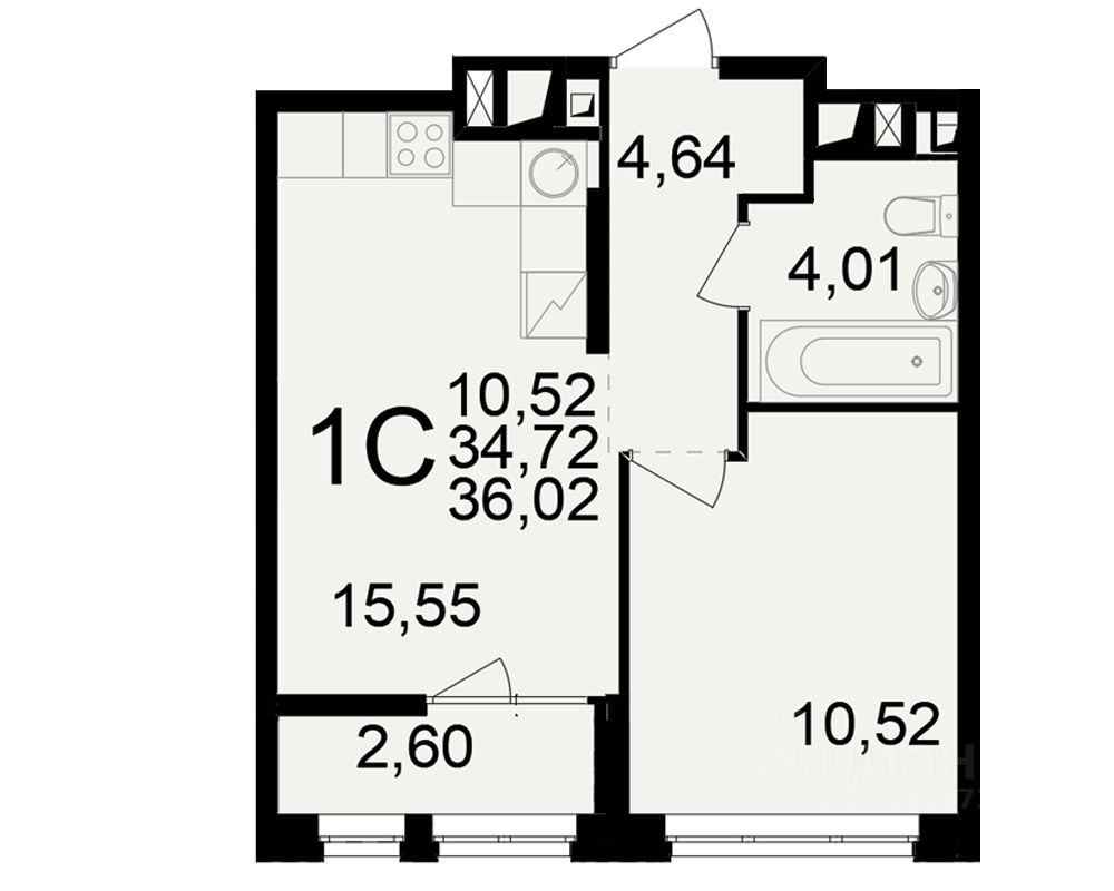 Общая площадь34,72 м²
