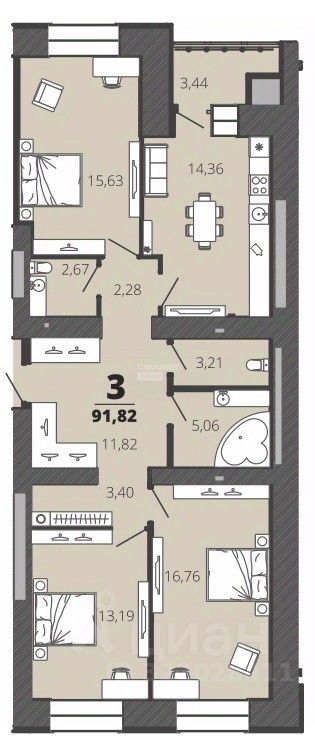 Уникальная 3-х комнатная квартира в жилом комплексе "Бирюзова парк" по цене ниже чем у застройщика со скидкой 150000 рублей на кухню!