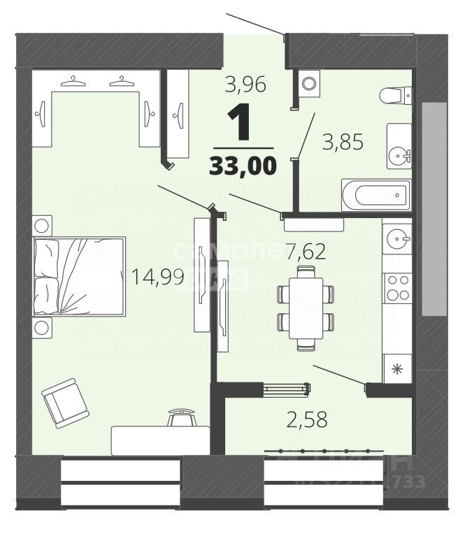 Уникальная однокомнатная квартира в жилом комплексе "Бирюзова парк" по цене ниже чем у застройщика со скидкой 150000 рублей на кухню!
