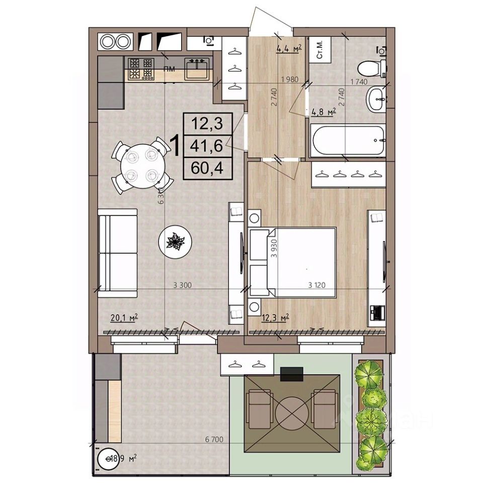 Квартира с собственной террасой! Вы покупаете не только жильё, но и собственный зеленый дворик для барбекю, детского бассейна, качелей, тренажёрного зала, летней оранжереи и так далее - на ваш вкус.