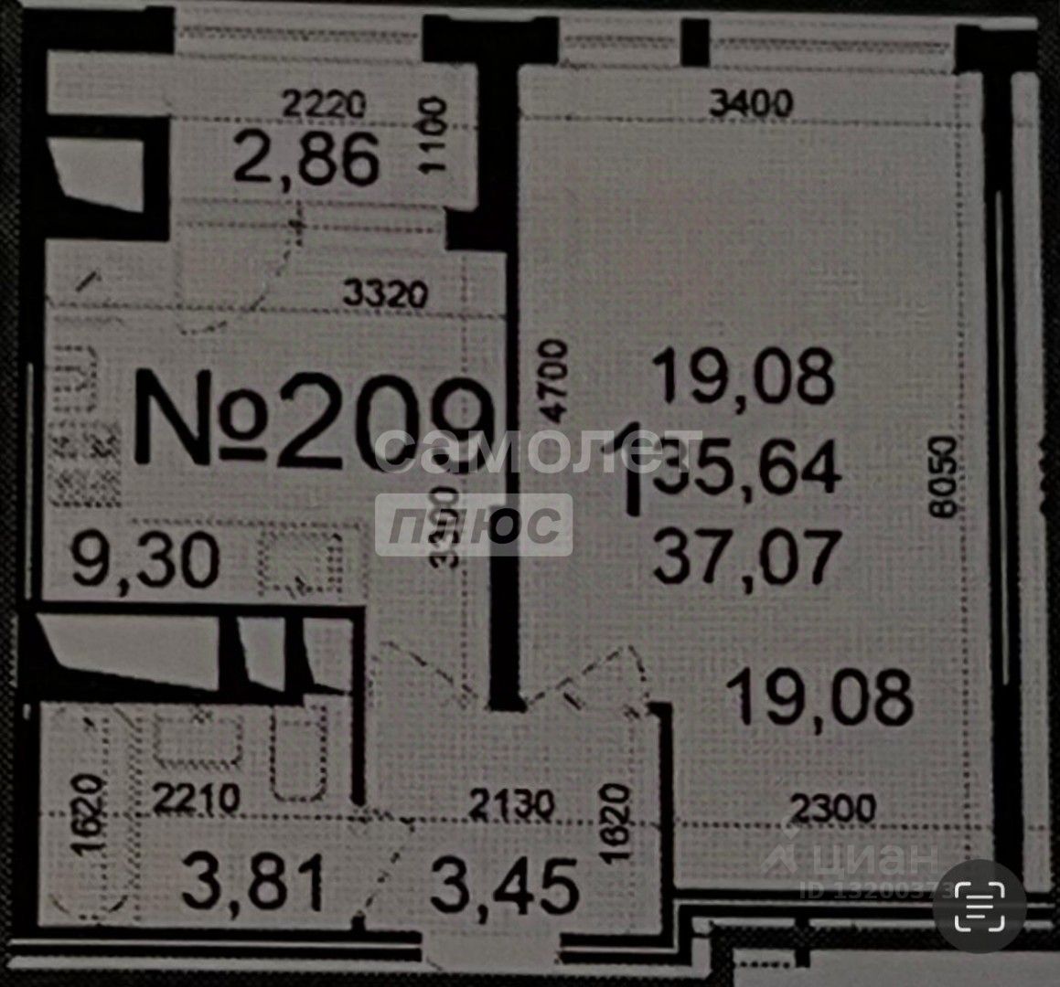 ПЛАНИРОВКА И ПЛОЩАДЬ: Общая площадь квартиры 37,7м2. Прихожая с нишей под шкаф-купе 3,45м2. Совмещенный санузел с разведенными мокрыми зонами - 3,84м2. Спальня 19,08м2 c тремя окнами и нишей под спальное место. Кухня-гостиная 9,30м2 с лоджией 2,86м2.