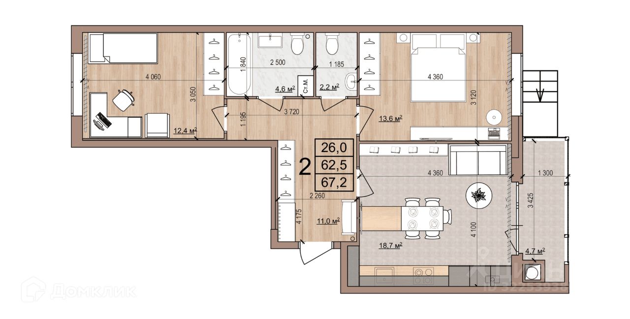 67,2 м²