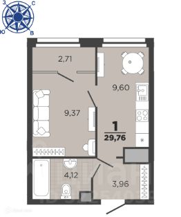29,76 м²