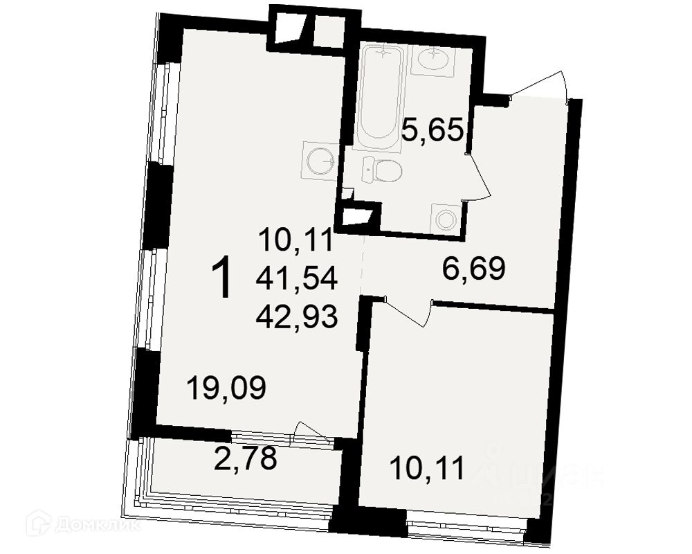 42,93 м²