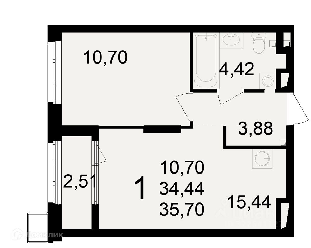 10,7 м²