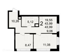 43,99 м²