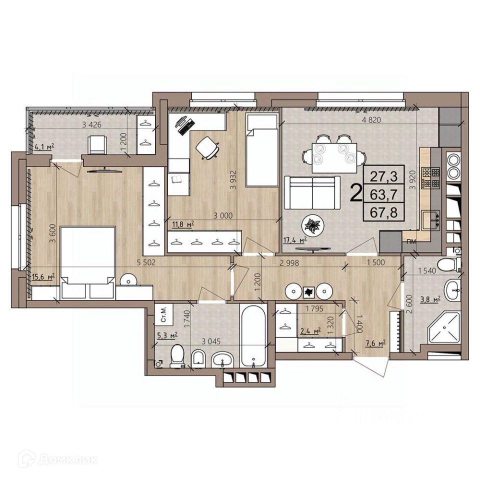 67,8 м²