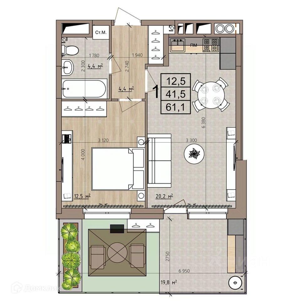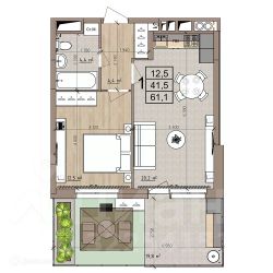 61,1 м²