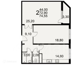 74,55 м²