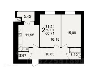 60,71 м²