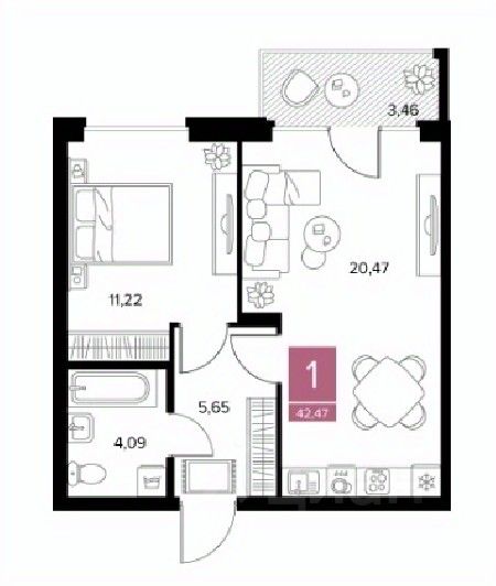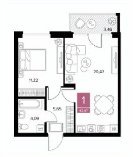 42,47 м²