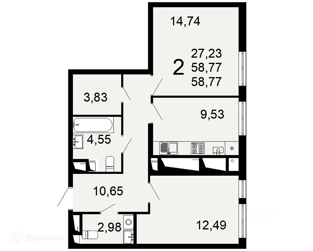 58,77 м²