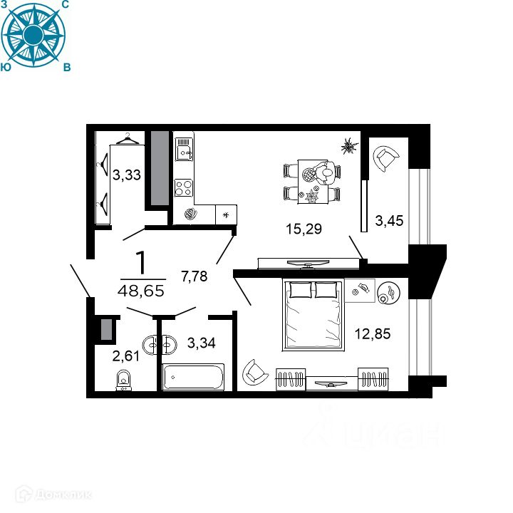 48,65 м²