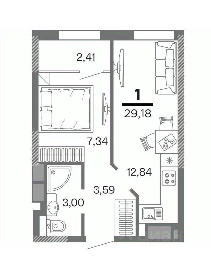 Общая площадь29,18 м²