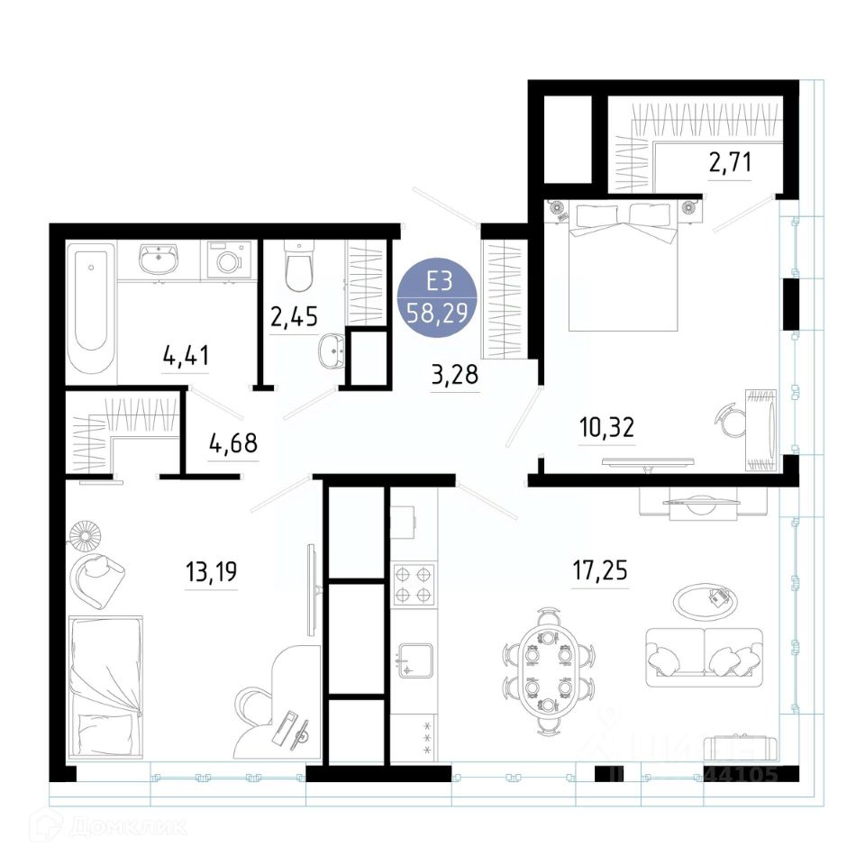 58,29 м²