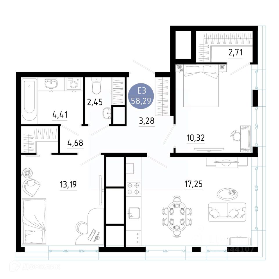 58,29 м²
