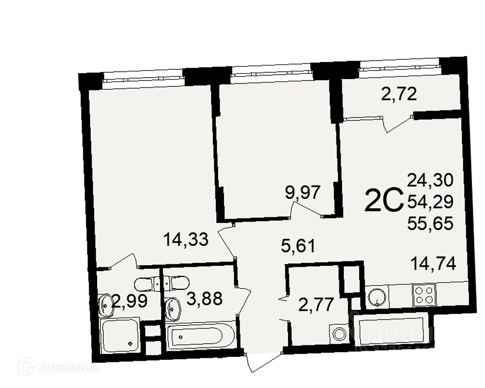 55,65 м²