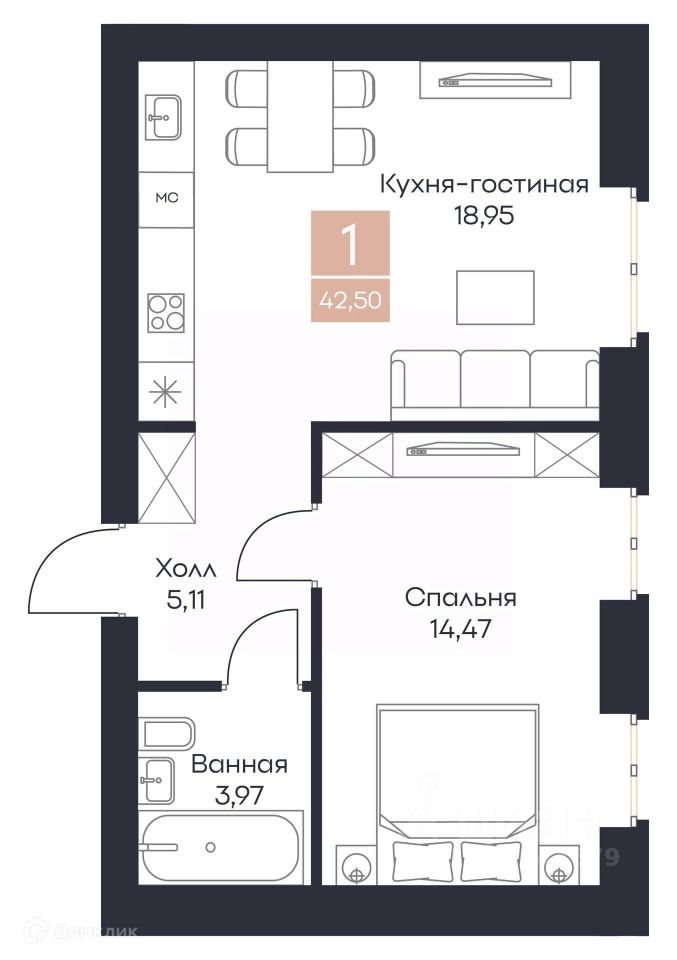 42,5 м²