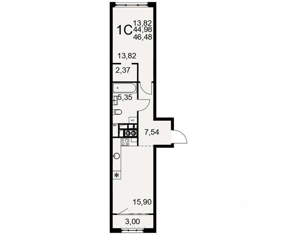 Общая площадь44,98 м²