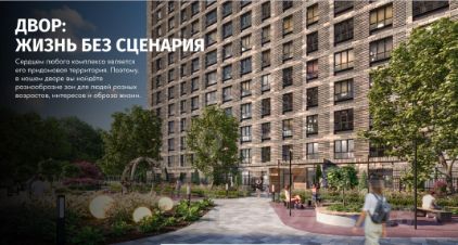 на территории комплекса предусмотрены современные дворы без машин, есть детские площадки и пространство для воркаута. Входные группы прозрачные, безопасные и не имеют ступенек.