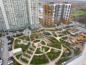 У дома закрытая территория с видеонаблюдением. На территории обустроенные современные детские площадки. Имеется парковая зона.