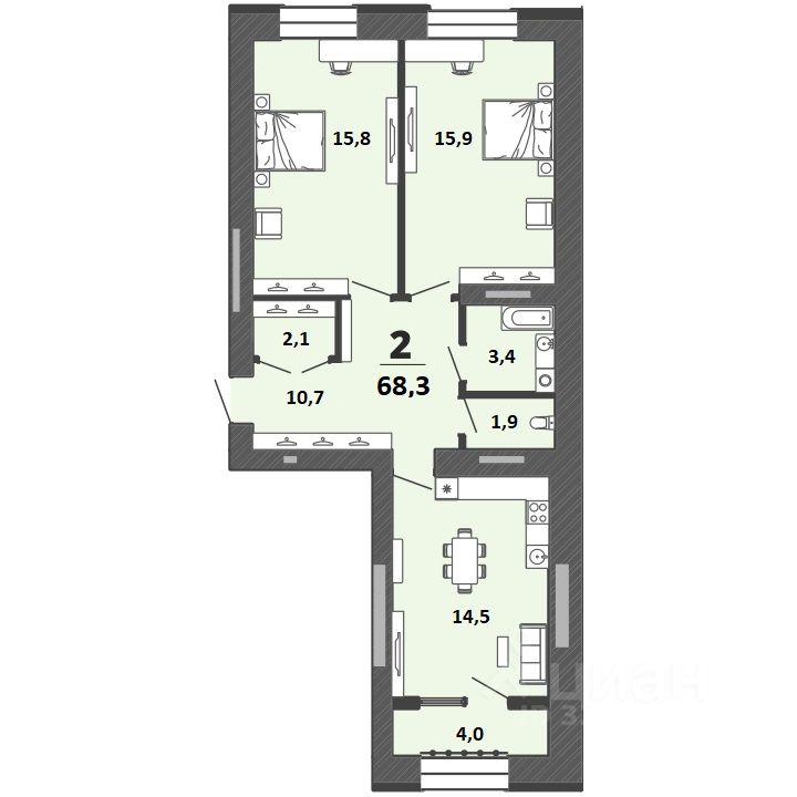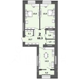Общая площадь без лоджии 64,3 м2. Площадь лоджии 4 м2.
