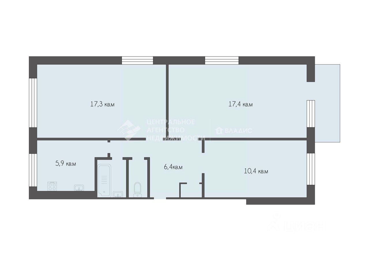 В остальном состояние квартиры предоставляет вам свободу для реализации собственных дизайнерских идей.