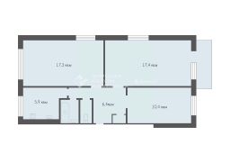 Общая площадь составляет 61,2 кв.м., из которых 45,1 кв.м. - жилая площадь, 6 кв.м.- кухня.