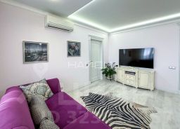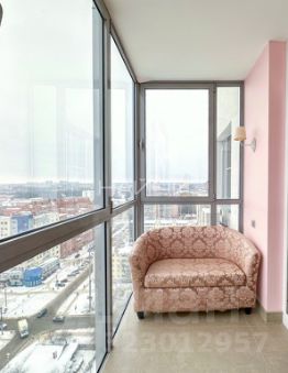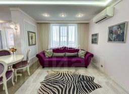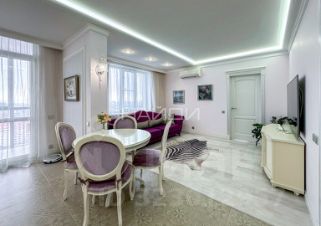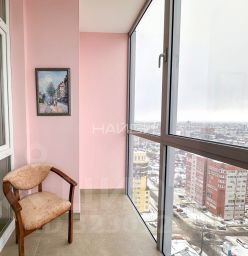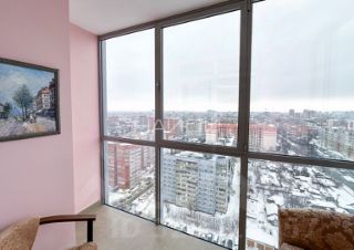 Расположена на 18 этаже. Ремонт выполнен по авторскому дизайн-проекту, где все продуманно до мелочей. В квартире много света и пространства благодаря панорамному остеклению. Окна ориентированны на одну сторону (улицу) из которых открывается вид на весь горoд.