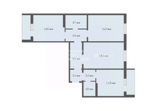 Квартира имеет удобную планировку с изолированными комнатами (18,1 + 16 + 13,8 кв. м), кухня 11,8 кв. м