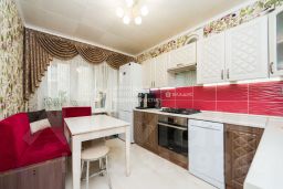 На кухне остаётся кухонный гарнитур, мягкий диванчик. Техника на кухне по договорённости.