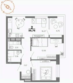 Планировка ЕВРО-3 на 9 этаже в новом 22-этажном доме "Нобель". Это единственная в продаже квартира с панорамными окнами — ваш шанс жить с видом на город!