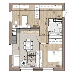 Продаётся 2-комнатная квартира в строящемся доме (Корпус 1), срок сдачи: I-кв. 2029, общей площадью 55 кв.м., на 3 этаже. Новый жилой комплекс "Полярная звезда" от застройщика "Зеленый сад" расположен по адресу Рязань, улица Новосёлов, 33Б.