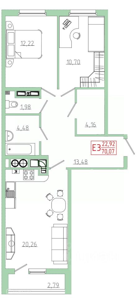 70,07 м²