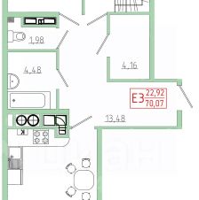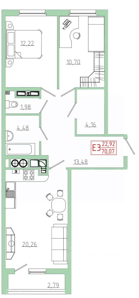 70,07 м²