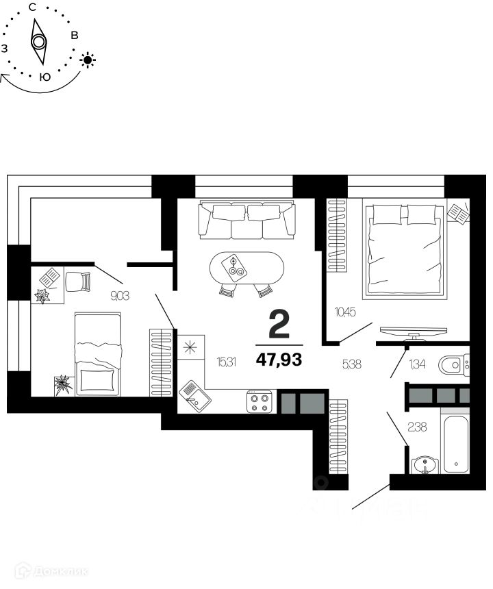 47,93 м²