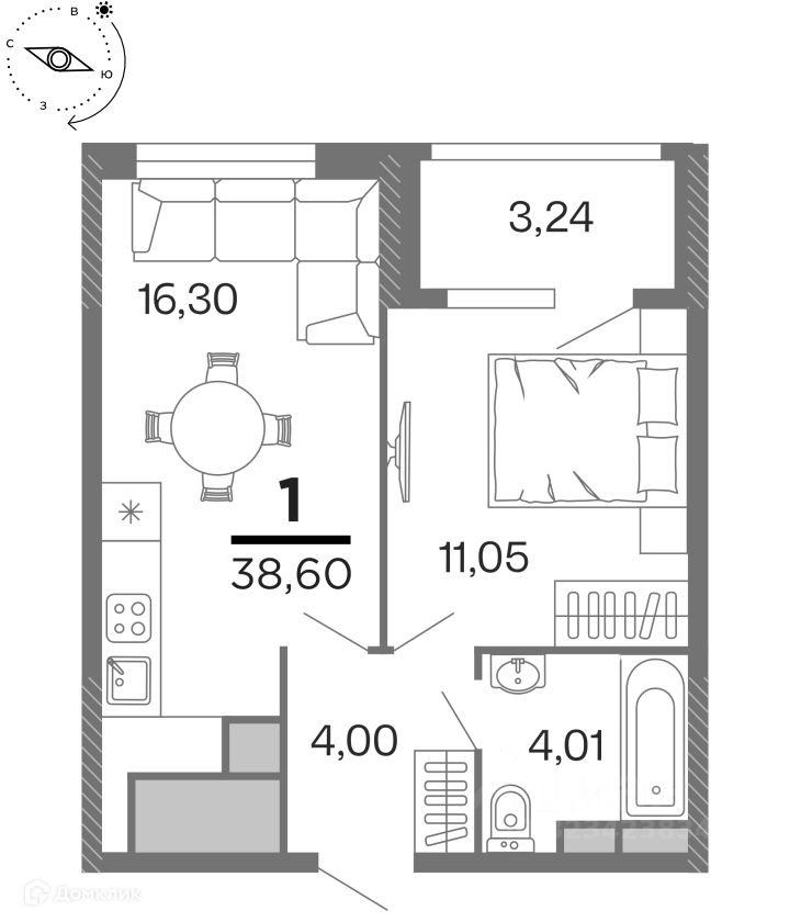 38,6 м²