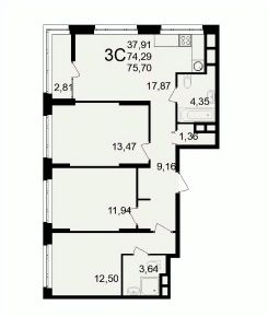 75,7 м²