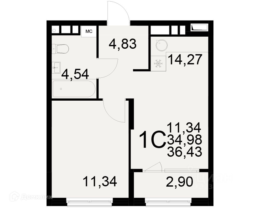 36,43 м²