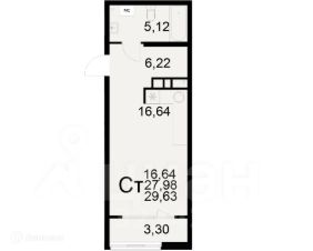 1 комн. квартира в ЖК Радости жизни, площадь 29.63 м², жилая 16.64 м², кухня м²