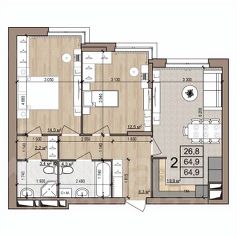 64,9 м²