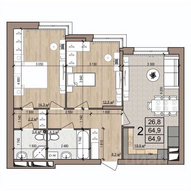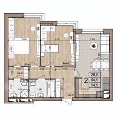 64,9 м²