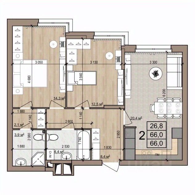 26,8 м²