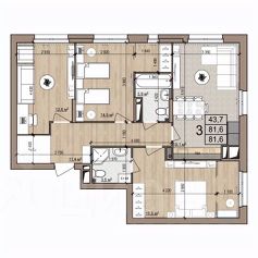 3 комн. квартира в ЖК Полярная Звезда, площадь 81.6 м², жилая 43.7 м², кухня 19.1 м²