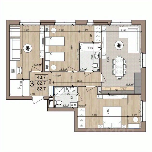 82,7 м²