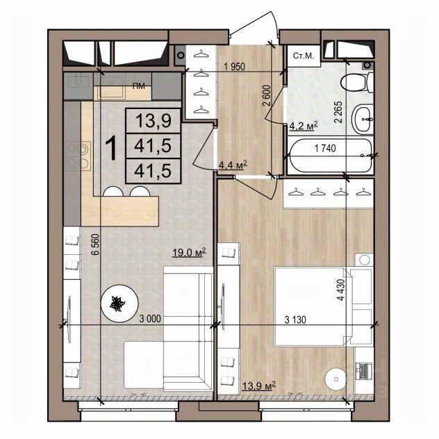 41,5 м²