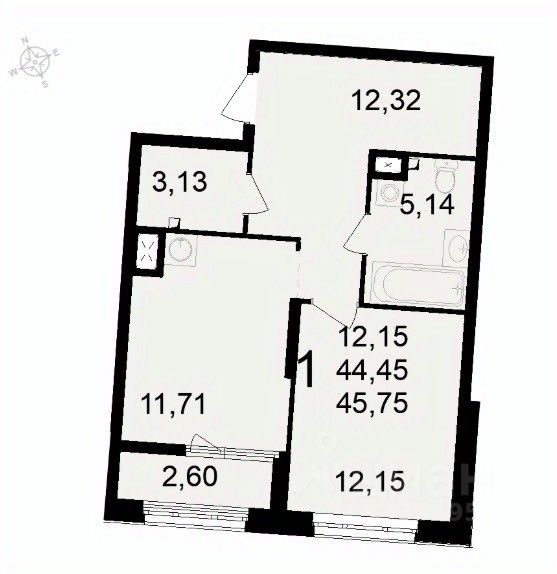 45,75 м²