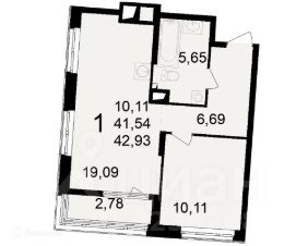 42,93 м²